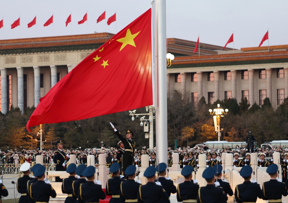 2025年1月1日清晨,北京天安門廣場舉行隆重的升國旗儀式。