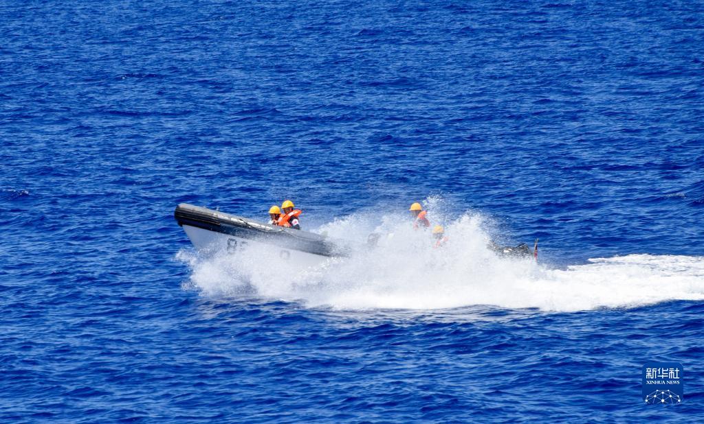 當(dāng)?shù)貢r(shí)間7月6日上午,中國(guó)海軍“和平方舟”號(hào)醫(yī)院船在西太平洋某海域開展全要素、全流程??樟Ⅲw醫(yī)療救護(hù)演練。這是高速救護(hù)艇前出營(yíng)救“落水人員”。新華社發(fā)(任天然 攝)