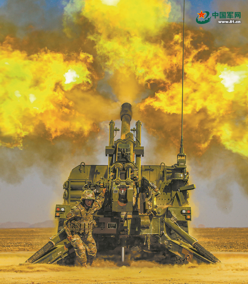 “預備——放!”指揮員下達指令,炮彈呼嘯而出,目標地域火光沖天。