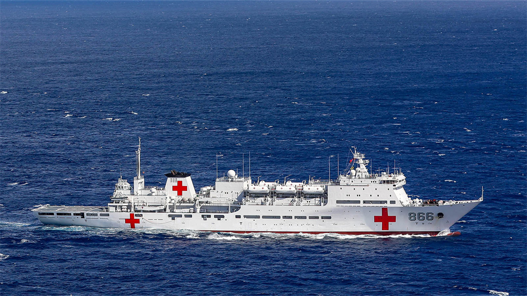 中國海軍“和平方舟”號醫(yī)院船在海上航行。黎宇 攝