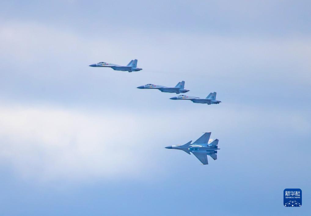 海軍航空大學(xué)某基地組織艦載機(jī)飛行學(xué)員駕駛戰(zhàn)機(jī)飛赴預(yù)定空域,開展飛行訓(xùn)練(2023年8月23日攝)。新華社發(fā)(姜濤 攝)