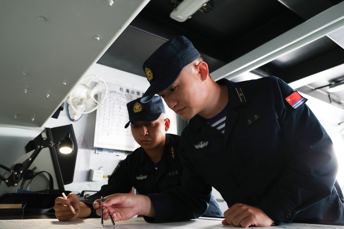 6月26日,在中越第36次北部灣聯(lián)合巡邏中,中方艦艇官兵制定搜索方案。新華社發(fā)(佟佳峻 攝)