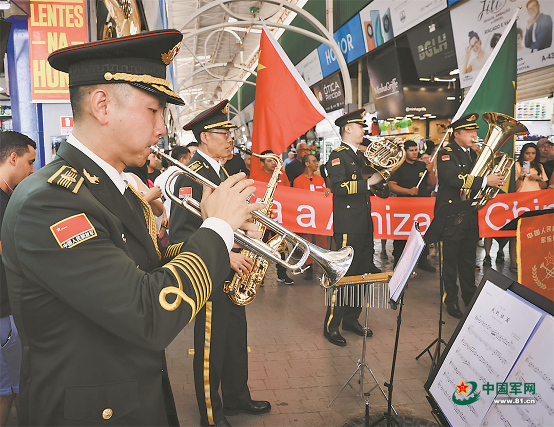 軍事文化周期間,解放軍軍樂團(tuán)組織開展進(jìn)社區(qū)、進(jìn)校園、進(jìn)軍營活動,在巴西利亞小商品市場、里約科帕卡巴納要塞等地組織“軍樂快閃”,把中國軍樂帶給巴西民眾,反響非常熱烈。軍樂團(tuán)還與巴西總統(tǒng)衛(wèi)隊軍樂團(tuán)、海軍陸戰(zhàn)隊軍樂團(tuán)進(jìn)行聯(lián)合演出,用音樂拉近了兩國之間的距離。