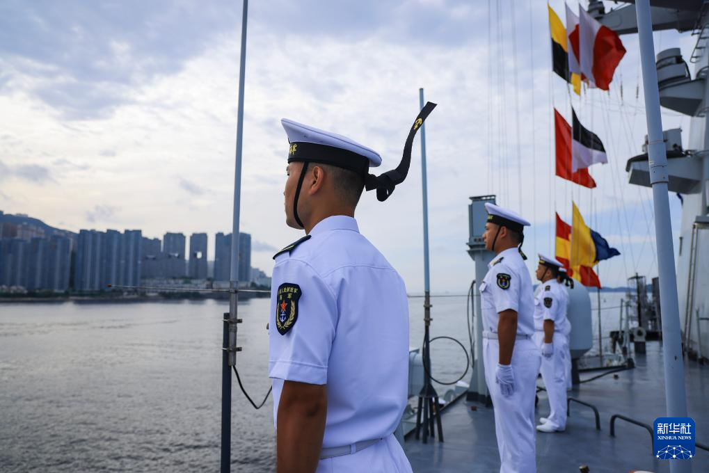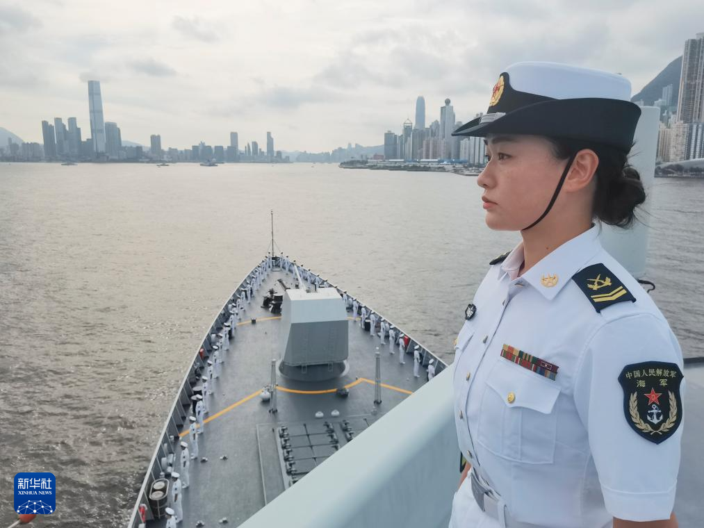 近了,近了,“東方之珠”的輪廓逐漸清晰。700余名海軍官兵分區(qū)列隊(duì),站立舷旁,向前來歡迎的人群揮手致意。二級(jí)軍士長(zhǎng)齊正坤給區(qū)隊(duì)的年輕人介紹:這是金紫荊廣場(chǎng),這是香港第一高樓環(huán)球貿(mào)易廣場(chǎng),那是中環(huán),遠(yuǎn)處的制高點(diǎn)是太平山。