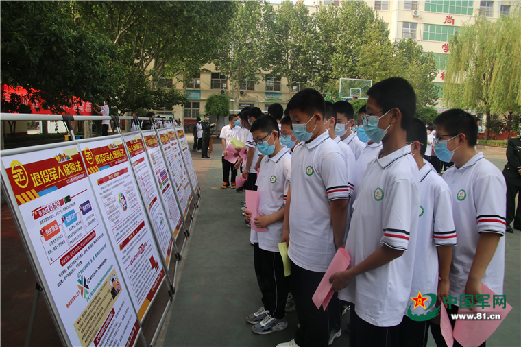 在國(guó)防法規(guī)展板前,學(xué)生們逐條逐句研究著法規(guī)條款。“以后我也要當(dāng)兵!”初一學(xué)生陳灝喆與身邊的同學(xué)交流:“我家里有兩名軍人,現(xiàn)在國(guó)家對(duì)軍人軍屬的優(yōu)待越來(lái)越多,真的做到了‘一人當(dāng)兵,全家光榮’。”