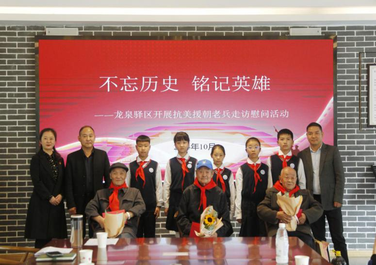 組織開展全覆蓋走訪慰問抗美援朝老兵活動,為他們送去慰問品,向他們表達親切的問候和崇高的敬意。海軍愛民小學龍泉驛區(qū)第四小學校組織黨員教師和少先隊員代表共同參加走訪慰問活動,少先隊員為抗美援朝老兵佩戴紅領(lǐng)巾并敬隊禮,獻上抗美援朝主題手工剪紙作品,認真聆聽老兵們講述革命經(jīng)歷。