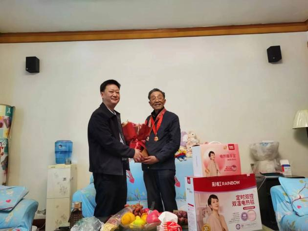 走訪慰問抗美援朝老戰(zhàn)士代表陳學云、楊正修,與他們進行親切交談,聆聽他們講述抗美援朝戰(zhàn)爭中浴血奮戰(zhàn)的革命歷程和英雄事跡,觀看了解老戰(zhàn)士珍藏的勛章、老物件以及背后的故事,并送上慰問品,向抗美援朝老戰(zhàn)士致以崇高的敬意。